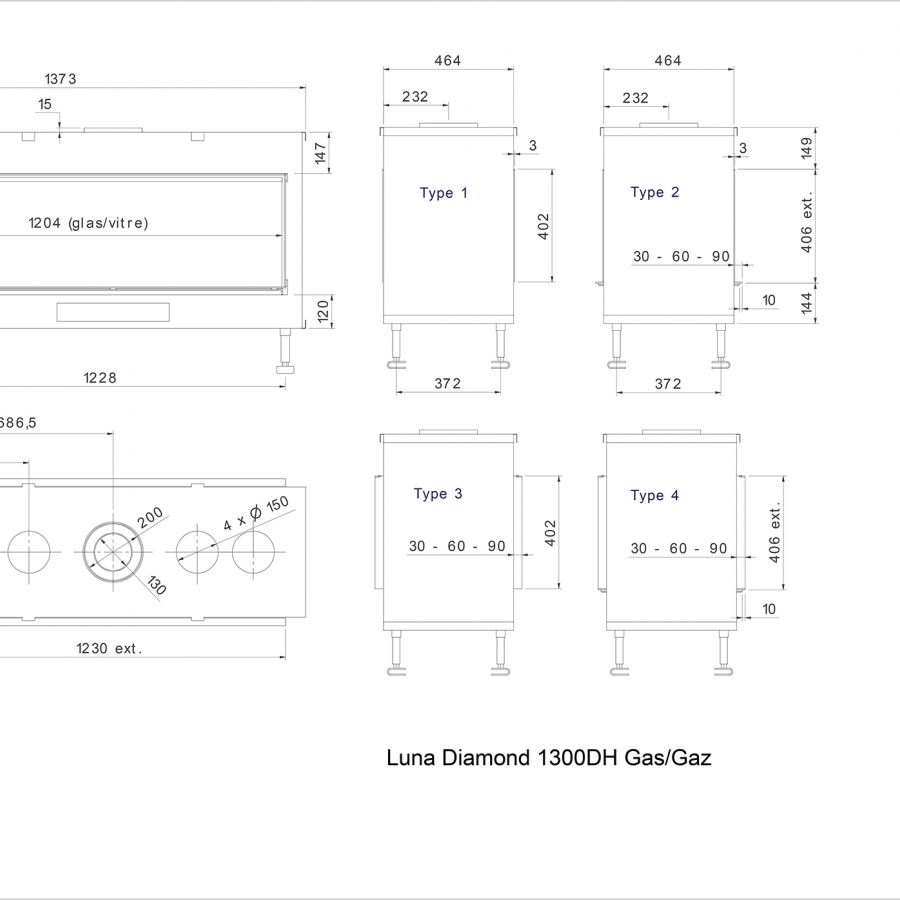 Le LUNA Diamond 1300 DH est une cheminée gaz, double face horizontale. Toutes les configurations sont disponibles pour ce foyer Gaz, faisant parti des plus grands foyers gaz de la gamme des Luna Diamond.