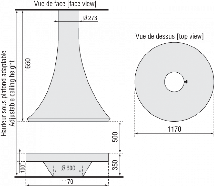 | Options | Hotte centrale : peinte ou color double laquée unie, ou brut ou vernis foncé Hotte centrale : double laquée Savane, (motif : tigre, girafe ou zèbre) Socle central : peint avec plateau briqueté ou tout métal - Bac à cendres sous la grille Socle central : laqué Savane, plateau de verre en 3 parties - Bac à cendres sous la grille Socle central : Peint, plateau de verre en 3 parties - Bac à cendres sous la grille Socle effet ciré (couleurs : blanc cassé, noir ébène, gris, taupe, chocolat) Rehausse de socle, (20 cm maximum) Socle vide, (sans briques), finition à réaliser par vos soins Rallonge de conduit non laqué , (au-delà de 2,5 M et pour 1 M supplémentaire) Rallonge de conduit laqué , (au-delà de 2,5 M et pour 1 M supplémentaire) Rallonge de conduit laqué, uni, brut ou vernis foncé, (au-delà de 2,5 M et pour 1 M supplémentaire) Rallonge de conduit laqué Savane, (au-delà de 2,5 M et pour 1 M supplémentaire) Bandeau de socle laqué uni Platine cache plafond Fixation pour c |