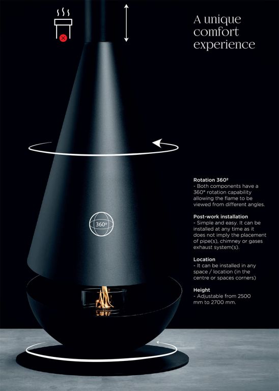 La possibilité de faire pivoter les deux composants du modèle vous ouvre la voie à la contemplation d’une flamme dansante qui envahit l’environnement environnant, créant une atmosphère chaleureuse et réconfortante. Une carte de visite pour les espaces les plus incroyables et uniques.