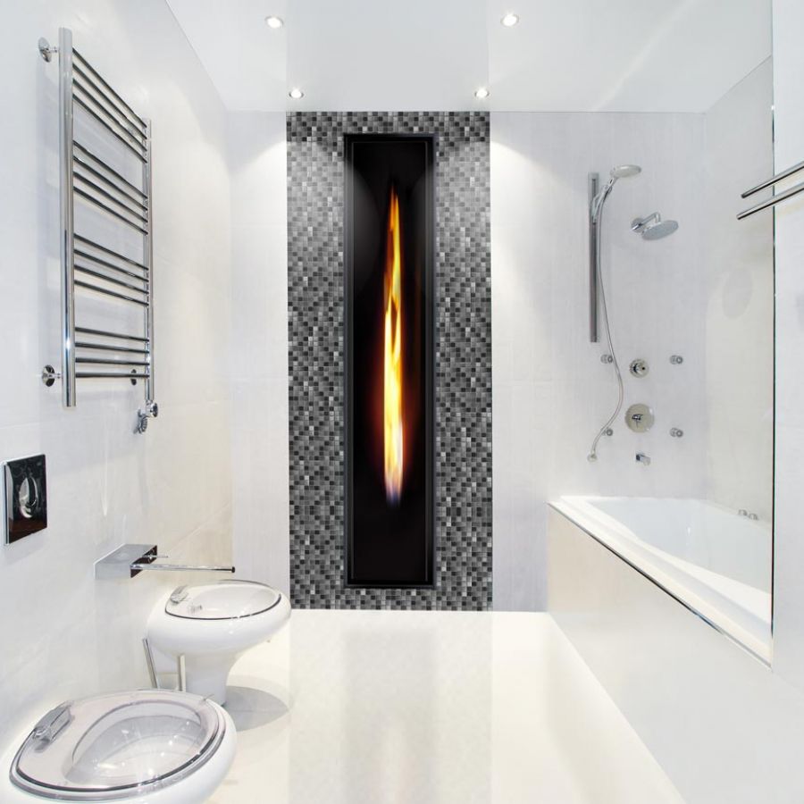 Élément design et malin s’installe facilement sur un pan de mur, ce foyer déco gaz à encastrer est proposé en deux versions, soit avec relief, soit dans le mur.