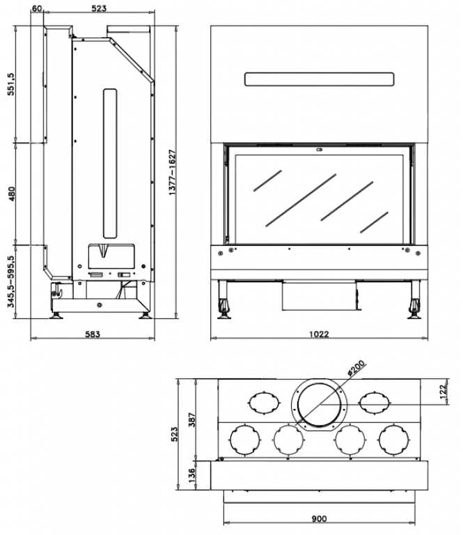 | Options | Kit de ventilation, Cadre 4 côtés de 4 cm Cadre décoratif de 10 cm Contrôle automatique de la combustion ECOntrol |