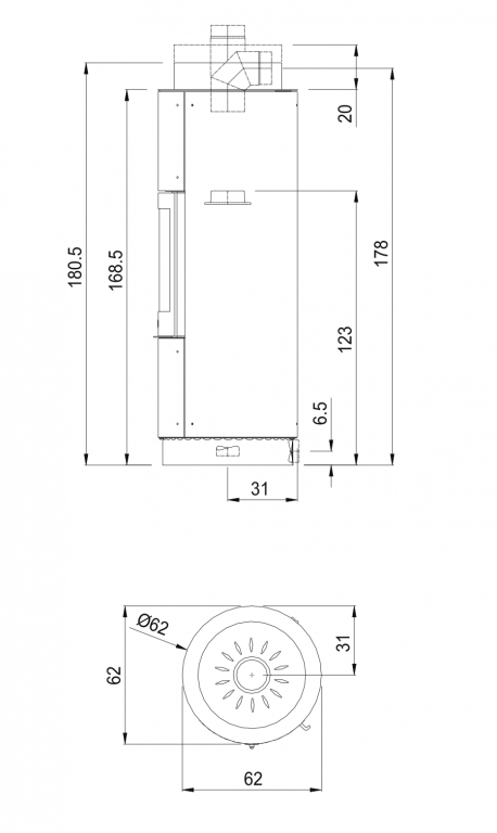 | Options | Hotte standard de 120 mm Hotte surélevée pour le départ fumées latéral ou arrière de 200 mm Bloc d'accumulation 8 pierres, 80 kg au total |