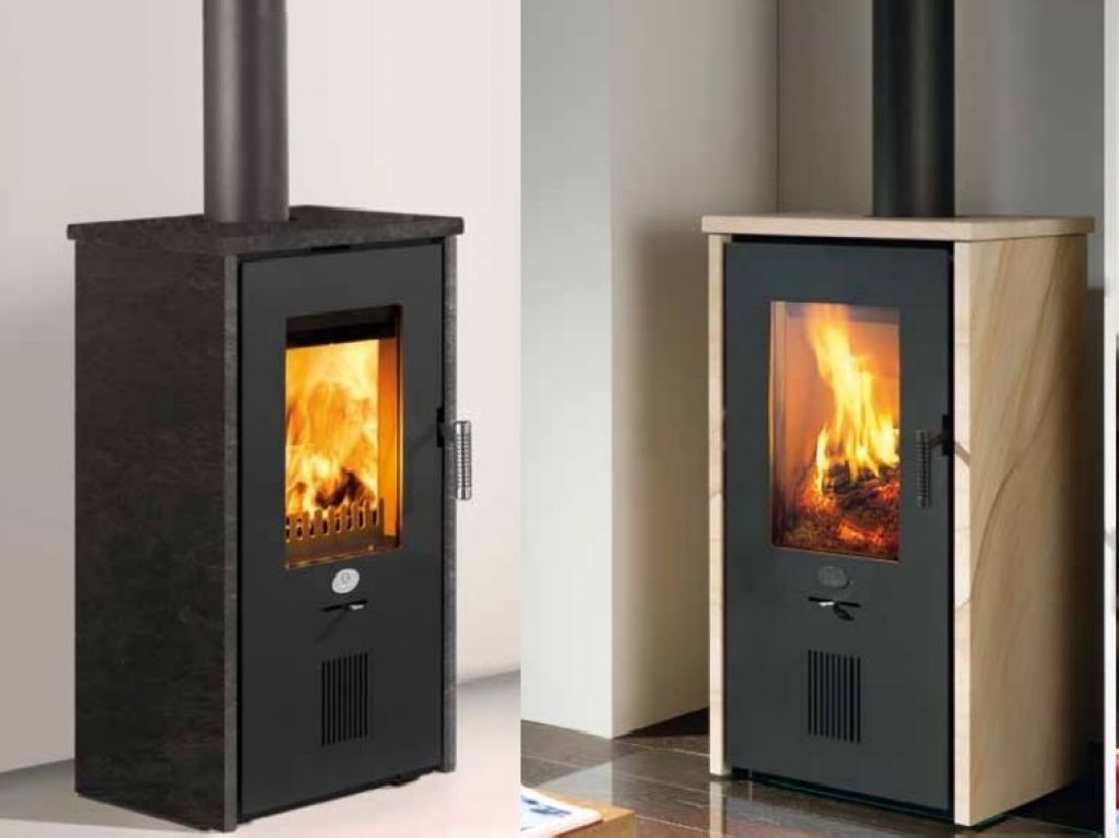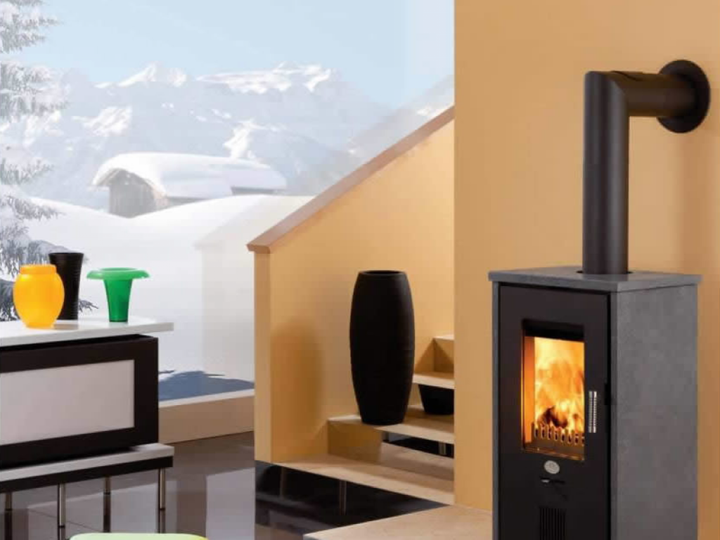 Poêle fonctionnnant au bois et au granulés sans électricité, le PORTO est sobre et élégant.