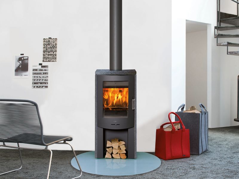 Le Poêle mixte bois et pellets RAVENNA fonctionne au bois (bûches de 33cm) ou granulés sans alimentation électrique, grâce au système de cassette à pellets MAX BLANK. Le poêle RAVENNA en acier possède un grand espace range-bûches sous le foyer. Habillage côtés et couvercle en pierre naturelle. Prise d’air frais horizontale ou verticale.