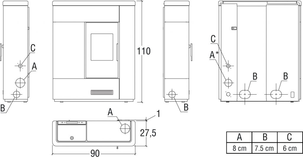 | Options | Raccord EDPA Humidificateur Télécommande Grille pour distribution latérale Option distributeur d'air chaud Multifuoco® Module Wi-Fi Sortie supérieure PGI intégré |