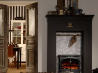 Foyer électrique indépendant avec feu tridimensionnel Opti-myst®. L’effet de flammes est créé grâce à de la vapeur d’eau ultrafine et un éclairage halogène.