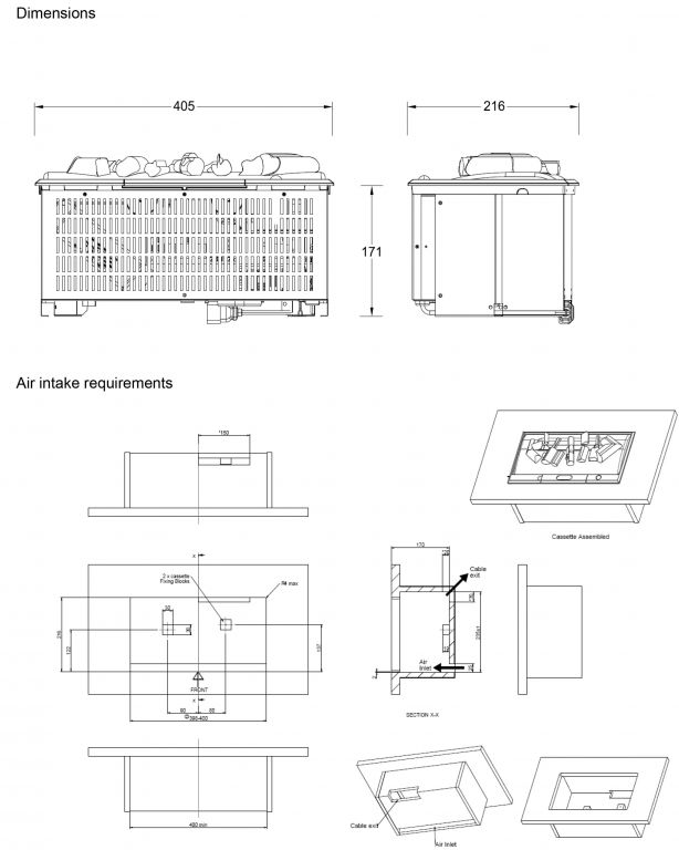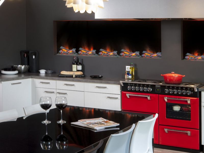La technique Opti-myst de Dimplex se distingue par un jeu de flammes très réaliste. La Cassette 400 de Dimplex combine un feu Opti-myst avec un effet de fumée. Grâce à ses dimensions réduites, cette unité encastrable est facile à installer. Il est possible de réaliser un feu en ligne en plaçant plusieurs unités les unes à côté des autres.